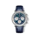 Paired with an elegant blue alligator leather strap, the Navitimer retains a sense of stately comfort while on the wrist. Its ergonomic thickness of 13.6 mm and water resistance of 30 meters further reinforce its suitability as both a statement piece and everyday companion.