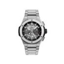 This model embodies Hublot’s philosophy of being daring, technical, and innovative. Its monochrome titanium palette, exposed mechanics, and integrated design create a bold, industrial-chic timepiece that merges cutting-edge engineering with striking aesthetics.