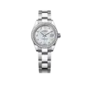 The Rolex Lady‑Datejust 28 mm Ref. 279384RBR‑0012 is a refined and feminine expression of the iconic Datejust. Crafted in white Rolesor—a combination of Oystersteel and 18 kt white gold—it features a diamond-set bezel and a luminous white mother‑of‑pearl dial adorned with diamond hour markers. This elegant timepiece balances timeless luxury with technical excellence, ideal for women seeking sophistication and reliability