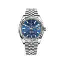 The Rolex Sky-Dweller Ref. 326934-0004 is a sophisticated traveler’s companion, uniting cutting-edge Rolex technology with timeless design. Crafted in White Rolesor — the combination of Oystersteel and 18 ct white gold — this 42 mm timepiece showcases a striking blue sunburst dial, a fluted white-gold bezel, and advanced dual time zone functionality. Featuring Rolex’s patented Saros annual calendar system, it elegantly displays both date and month, making it one of the most complex yet user-friendly watches in the Oyster Perpetual collection.